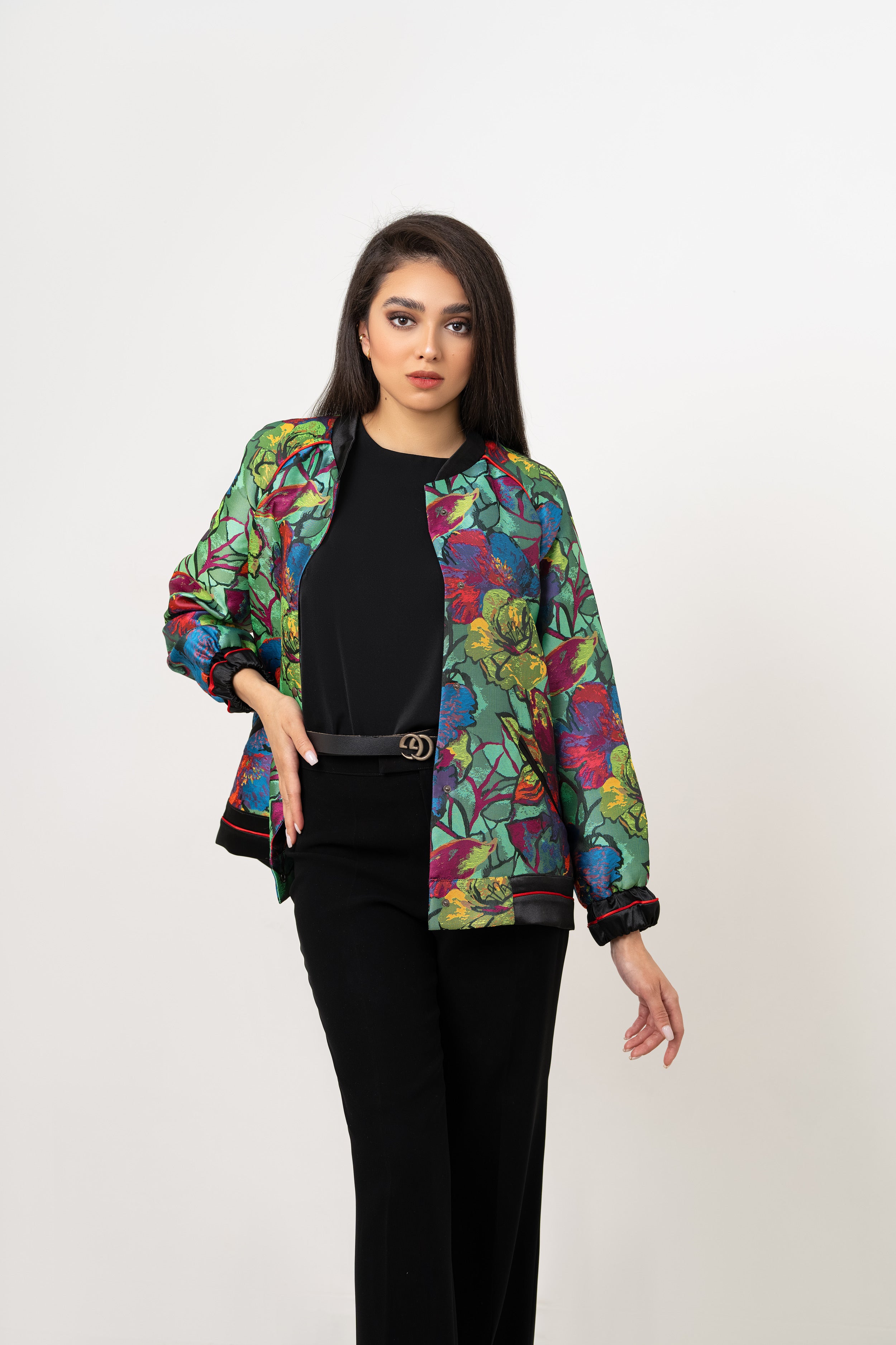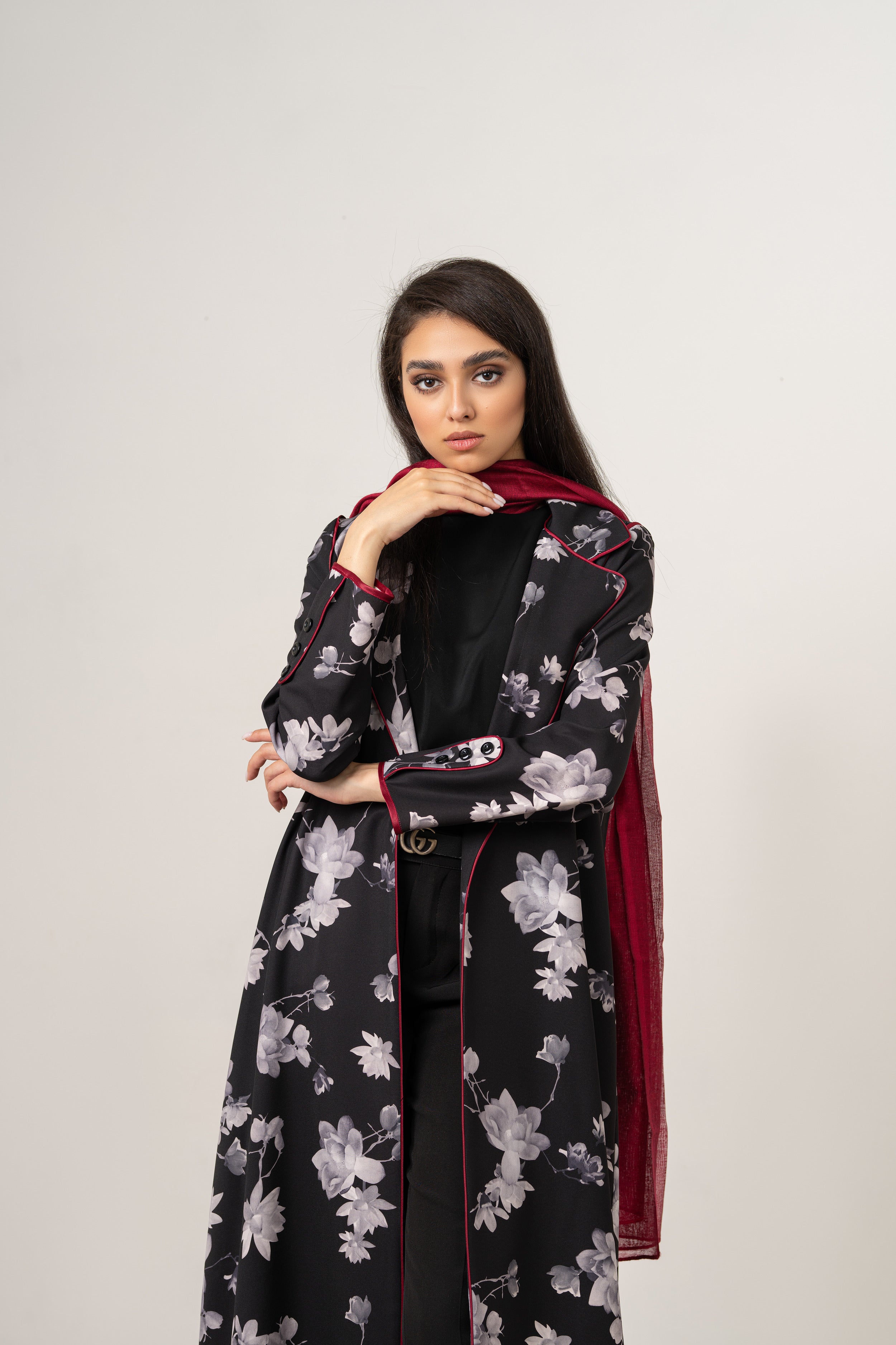 Monochrome Floral Jacket (Red Trim)